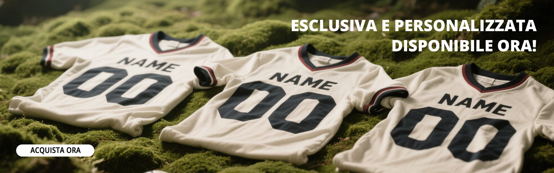 Maglie personalizzate con nome e logo. Tessuti premium, consegna in 48h per squadre e tifosi. Prova il designer 3D!